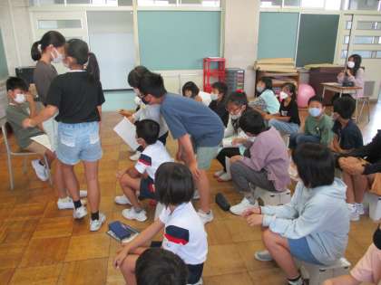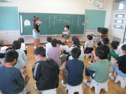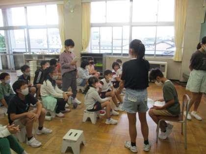 今日は朝の時間に代表委員会を開き、学習発表会のスローガンについて話し合いました。6年生は、委員会の5年生に進行の仕方を教えたり、下学年の発表の手助けをしたりしていました。
