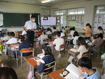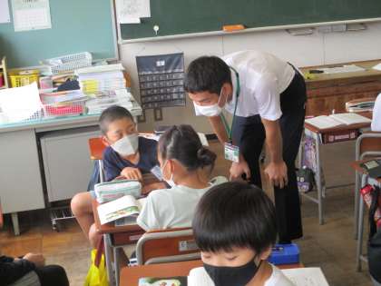 9月の初めから、4年生の教室には教育実習の先生が来ています。子供たちと親しげに関わったり、授業をしてみたりと、どんどん子供たちとの距離が縮まっています。子供たちも、年の近い先生が来てとても張り切っています。