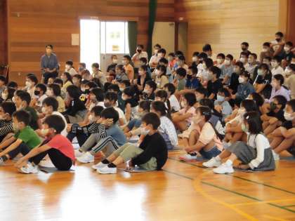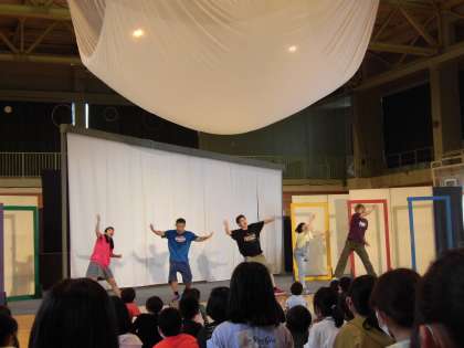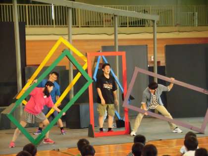 文化庁「子供のための文化芸術鑑賞・体験再興事業」の一環で劇団「風の子」による「ギャングエイジ」を鑑賞しました。子供たちは、体育館に入ると、まずフロアーに準備された大型の舞台装置に驚いていました。そして、劇が始まると、役になりきった役者の表情、声、動きに圧倒され、目の前で展開される劇の世界に浸り込んでいました。
