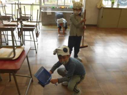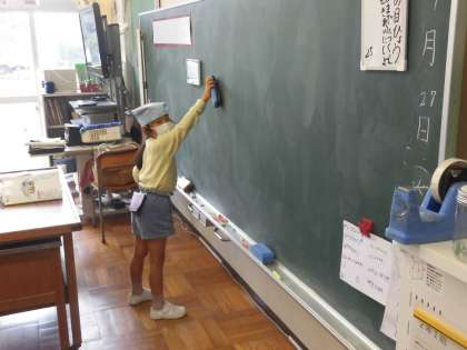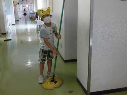 1年生 ファミリー清掃スタート 公開日 2022/09/27 更新日 2022/09/27 1年生 今日から、縦割り班での清掃が始まりました。1年生にとって、新しい掃除場所や初めて使う掃除用具もあります。上の学年の人たちに教えてもらいながら、学校をピカピカにできるといいですね。
