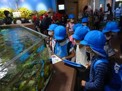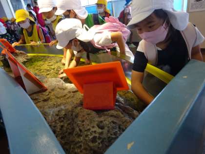 1、2年生一緒に魚津水族館とミラージュランドに行きました。好きな海の生き物を見つけたり、実際に触ってみたりなど、グループのみんなで楽しんでいました。