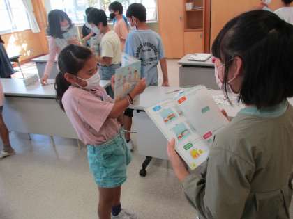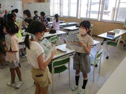 4年生の外国語活動では「Do you have〜?」という表現を使って、友達の持っている文房具を当てるゲームをしました。何度も練習することで、10種類以上の文房具の言い方も覚え、自信をもってインタビューしたり答えたりしていました。