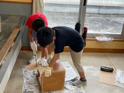 4年生の図画工作科では「ギコギコトントンクリエイター」という学習をしています。初めてのこぎりを使った子供達は、固い板を、のこぎりの刃を選びながら慎重に切り進めました。仲間と協力している子供もおり、一つの部分切るたびに歓声が上がっていました。今後は、切った材料を組み合わせて、アイディアを生かした作品を目指していきます。