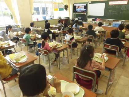 今日の給食の時間に、読み聞かせがありました。お話を聞きながら落ち着いて食事をすることができました。