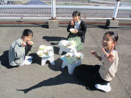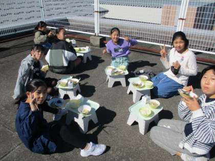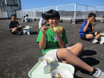 いい景色を眺めながら、おいしい給食を食べました。また一つ、思い出が増えましたね。