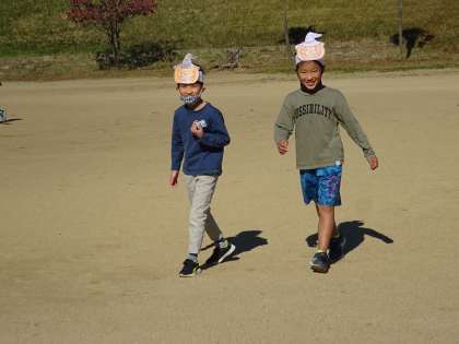 2年生 ハロウィンパーティー 公開日 2022/11/04 更新日 2022/11/04 2年生 事前に作ったお化けやかぼちゃのお面をつけて、鬼ごっこをしたり、ドッジボールをしたりして、ハープウィンパーティーを楽しみました。