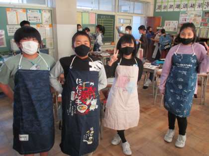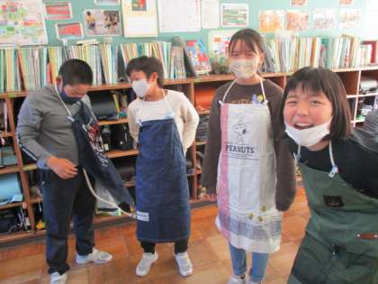 6年生 エプロン完成! 公開日 2022/11/07 更新日 2022/11/07 6年生 家庭科の時間にミシンで作っていたエプロンが完成しました。今日は、班のみんなで完成したエプロンを見せ合いながら、「ミシン上手!」や「ここ、まっすぐ縫えててすごい」などとお互いに褒め合う姿がありました。