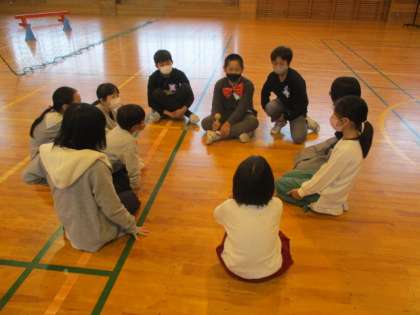 6年生 目的達成のための交流会 公開日 2022/11/08 更新日 2022/11/08 6年生 「他のファミリー班ともなかよくなろう」 「名前を覚えよう」 「1年生と思い出をつくろう」 など、各色団で交流会の目的・目当てを決めて交流を行いました。