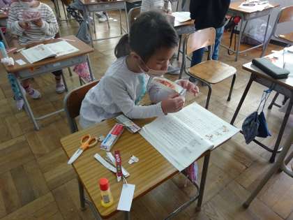 2年生 馬のおもちゃづくり 公開日 2022/11/11 更新日 2022/11/11 2年生 国語科の学習で、教科書の説明文を読みながら、箱から馬のおもちゃを作りました。「この写真みたいに作ればいいのか」「ホッチキスでとめたらいいんだ」など、作りながら説明文の良さに気付いていました。