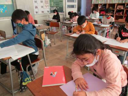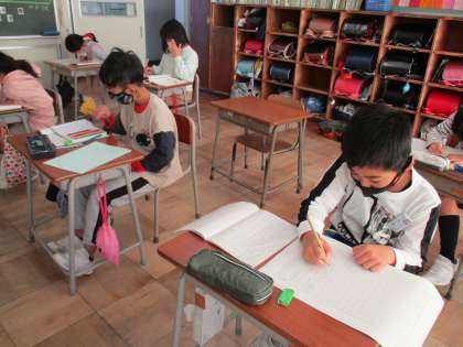 大豆以外のすがたをかえる食品について調べたことを文章にまとめ、清書しました。紹介する食品にあわせてイラストを入れたり、表紙の色を選んだりしていました。みんなの文章を読み合うのが楽しみですね。