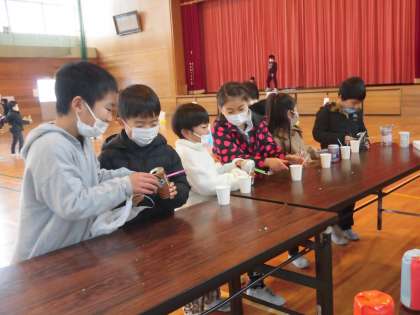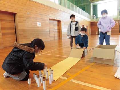 1年生 おもちゃフェスティバル 公開日 2022/12/21 更新日 2022/12/21 1年生 2年生に「おもちゃフェスティバル」に招待してもらいました。2年生が優しく遊び方を説明してくれて、おもちゃ遊びを楽しむことができました。最後には、感想を2年生に伝えました。とても楽しい時間となりました。
