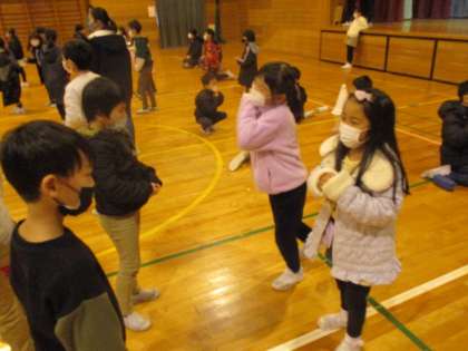 1年生 神明ショータイム 公開日 2022/12/23 更新日 2022/12/23 1年生 神明ショータイムがありました。1年生からは、2人がステージで発表をしました。鉄棒技やダンスなど、得意なことを全校のみんなに見てもらいました。とても緊張したと思いますが、堂々と発表をしていて素晴らしかったです。 その他にも、ファミリーでジャスチャー伝言ゲームを楽しみました。