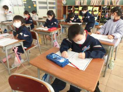 算数の時間には「大きいかず」の学習が始まりました。今日は、ひまわりとあさがおの種の数を、10のまとまりをつくって数えました。そして、自分の数え方の工夫を伝え合いました。