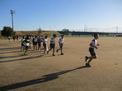 3学期最初の朝トレでは、下学年の手本となろうと一生懸命走っていました。