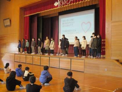 今日の歌声タイムでは、お手本として歌ってくれた子供たちがとても輝いていました。6年生にとっては、次が小学校生活最後の歌声タイムになります。それを知った子供の一人が