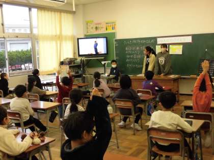 図書委員会の5、6年生が朝活動の時間に読み聞かせに来てくれました。体で平仮名を作るという内容の本では、実際に動いて平仮名に変身しながら聞いている子供たちもいました。本が好きな2年生。最後は大きな拍手で感謝の気持ちを伝えました。