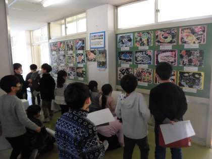 2年生 図工作品の鑑賞 公開日 2023/02/07 更新日 2023/02/07 2年生 廊下に掲示してある作品を改めてクラスのみんなで鑑賞しました。友達の作品のすてきなところを班で紹介し合いました。