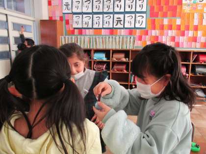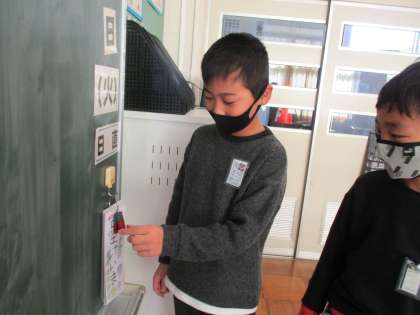 あかりの学習が終わり、磁石の学習が始まりました。今日は、どんな物が磁石に付くのか、それぞれが磁石をつかって調べました。電気を通す物でも、磁石には付かない物があるということに、驚いている様子も見られました。