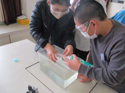 今日の理科の実験では、炭酸水の泡の正体を明らかにしました。すると「え?二酸化炭素を飲んでるってこと?」「二酸化炭素って水に溶けるの?」と疑問を抱く子供たちの姿がありました。好奇心旺盛な子供たちです!