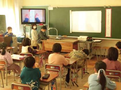 1年生 国語科 ことばクイズ大会 公開日 2023/02/12 更新日 2023/02/12 1年生 「ことばを見つけよう」の学しゅうでつくったクイズをつかって、ことばクイズ大会をしました。自分たちで考えたクイズを楽しむことができました。