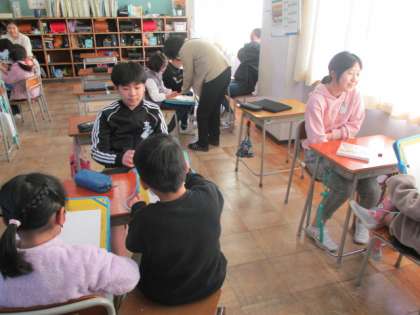 6年生 今日はモデルに。 公開日 2023/02/17 更新日 2023/02/17 6年生 サプライズで1年生から、モデルの依頼が! 1年生が似顔絵を描いてくれました。どんな似顔絵になったのかは見ていません。もらえる日が待ち遠しいですね!