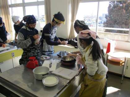 今日は、小学校生活最後の調理実習を行いました。計画や準備も全て子供たちが行い、協力して楽しみながら実習をすることができました。授業も小学校の思い出の一つとして、心の中に残ってくれるといいなと思います。