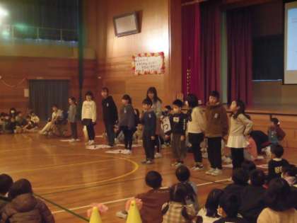 4年生は「6年生に6年間のことを思い出してほしい」「最後に思い出に残る会にしてほしい」と考え、「思い出クイズ」を出しました。