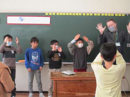 外国語活動では、外国語の歌にあわせて歌いながら、振り付けもしています。思わず口ずさんでしまうほど、みんなよく覚えています。
