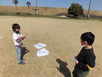 1年生 第2回 凧揚げ大会 公開日 2023/03/14 更新日 2023/03/14 1年生 先週に引き続き、凧揚げをしました。今日は、気持ちのよい風がふいていたので、高くまで凧をあげることができました。