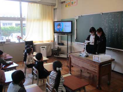 優しい6年生のおかげで、1年生は朝の準備もスムーズになり、休み時間も本を読んでもらったり、腕相撲をしたりして楽しく過ごしています。初めは緊張していた1年生も、知っている顔の6年生が来ると、嬉しそうです。