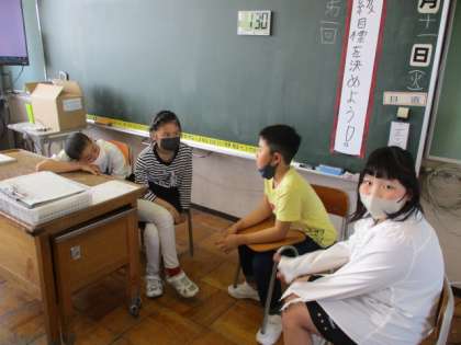 今日の学活では、第1回学級会を行いました。議題は、学級目標についてです。一人一人が「どのような5年1組にしたいか、なりたいか」を考えて、話し合いを進めていました。