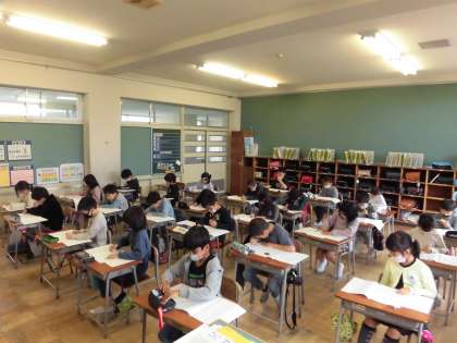 初めての学力調査テストに挑戦しました。最後まで集中して取り組むことができました。