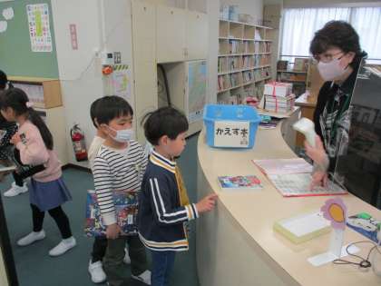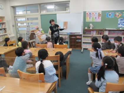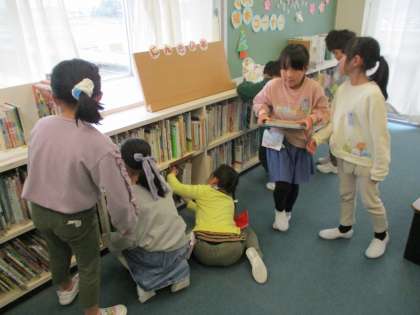 1年生はこの日初めて図書室を訪れて、学校司書の先生から本の借り方を教わったり、読み聞かせをしてもらったりしました。借りる時には、たくさんの本の中から、ワクワクしながら選んでいました。これからも定期的にクラスで借りに行き、本に親しむ子供達を育てていきたいと思います。