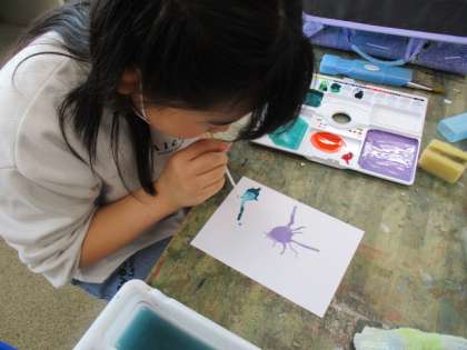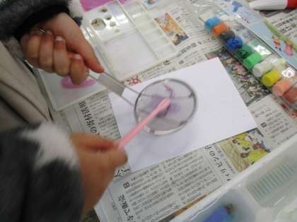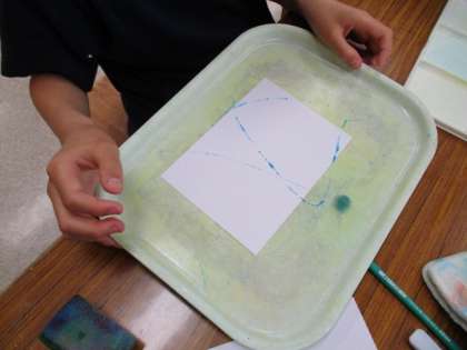 図画工作科では、ドリッピングやスパッタリングなどという技法でいろいろな模様を描きました。子供たちは、どのような模様になるのかとわくわくしながら楽しんでいました。