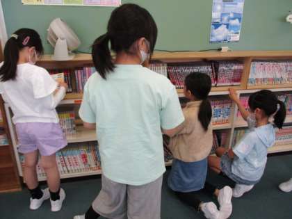 図書オリエンテーションが行われ、図書室の本を借りることができました。子供たちはどんな本を借りようかと嬉しそうに本を探していました。