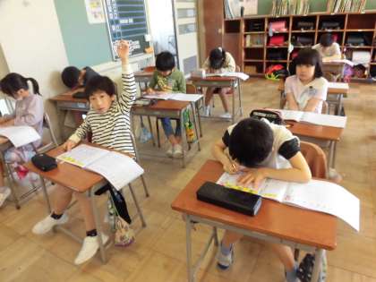 3年生の漢字の学習が始まっています。なぞり書きから丁寧に書き、書き順もしっかりと覚えられるように練習をしています。