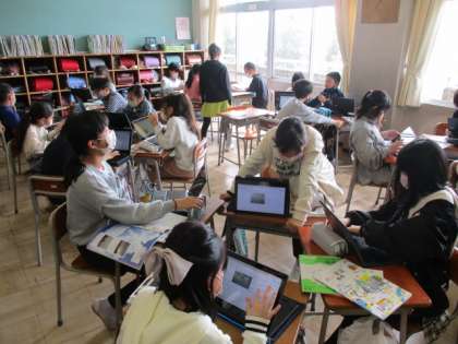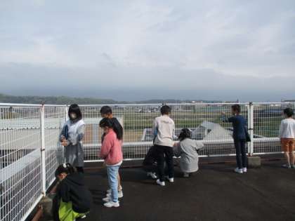 5年生の理科では、学校の屋上から天気や雲の様子を観察し、班で撮った写真をもとに考察したり、これからの天気を予想したりしました。