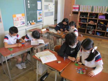算数では、図形のかさを調べるために、1cmの立方体がいくつ集まったものなのかを実物を使って考えることができました。