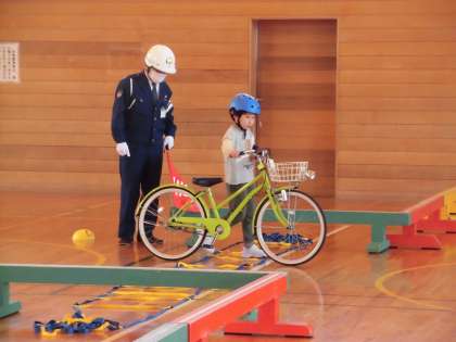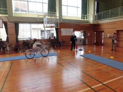 3年生 自転車教室 公開日 2023/04/25 更新日 2023/04/25 3年生 警察の方や地域の交通指導員の方に来ていただき、自転車教室を開きました。命を守るため気を付けることや、乗り方を教えていただきました。お話を聞いた後、実際に体育館の中のコースを自転車で走りました。 家で自転車にのる際には、今日学んだことを生かして、安全に乗りましょう。