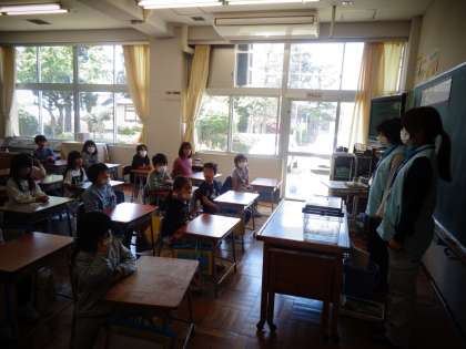 2年生は、ホクリクサンショウウオの幼生から陸に上がるまでを育てることになりました。子供たちは目をきらきらさせながら、ファミリーパークの方から飼育の仕方の説明を真剣に聞きました。