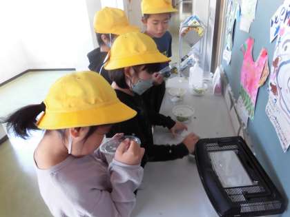 3年生 幼虫に変化が! 公開日 2023/05/15 更新日 2023/05/15 3年生 理科の学習で育てている幼虫に変化がありました。何か殻のようなものに入り固くなっています。土日の間、家に持ち帰ってお世話をした人も変化に気付いて持ってきました。帰る前も、自分のアオムシの様子を見に行っていました。どのように成長するのか楽しみです。