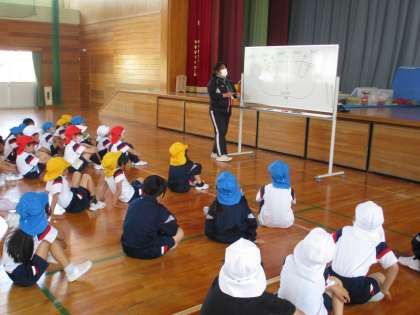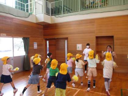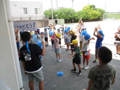 1年生は、初めての運動会に向けて頑張ってきました。始めは戸惑っていた応援の仕方も、どんどん覚えて、どの団も元気よく言えるようになりました。玉入れやリレーの動きもしっかりと覚えました。明日の運動会では、自信をもって元気よく競技に取り組んで欲しいです。
