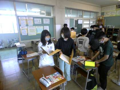 外国語の時間には、友達が普段することをたずねる言い方について学習しました。インタビューゲームでは、友達がすることを楽しく聞きあう姿が見られました。