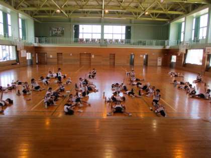 写真は全力で頑張った子供たちのクールダウンの時間です。(応援に熱が入り過ぎ、走っている時のシャッターチャンスを逃しました。)