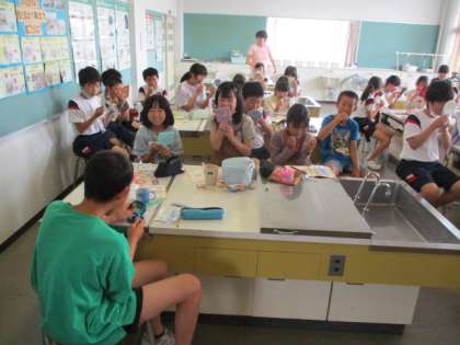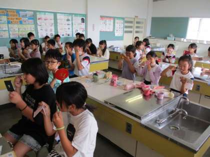 今日は動画を見ながら「歯磨き」について学習しました。口の中のネバネバの正体が食べかすではなくて細菌だと知り、ビックリしましたね!これからも、しっかり歯磨きして歯肉炎を予防しましょう!