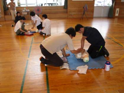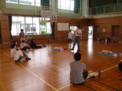 来週から始まる水泳学習を前にして、教員が救命講習会を受けました。もしもの時を想定して、命を救う手順をしっかりと学びました。