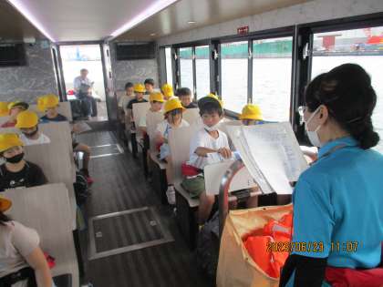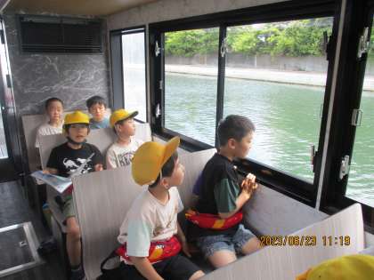 岩瀬のカナル会館から水上ラインにのりました。途中にある水のエレベーターでは、水位があがることで、船が上がっていくことを体感しました。