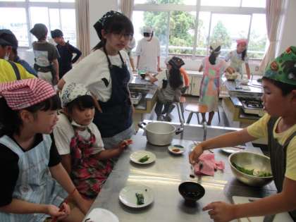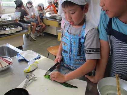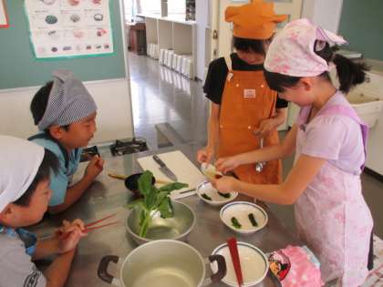 今日の家庭科では調理実習をしました。ゆで料理に取り組み、青菜のおひたしを作りました。班で「おもてなし側」と「お客さん側」に分かれて楽しく活動できました。ぜひ家でもつくってみましょう!