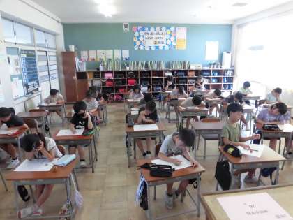 1学期のまとめのテストが始まりました。今日は国語のテストを実施しました。45分間集中して取り組みました。