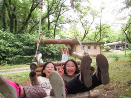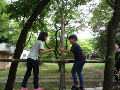 竹ジャングルでは、自然の中の遊具で思い切り遊びました。疲れ知らずの子供たちです。